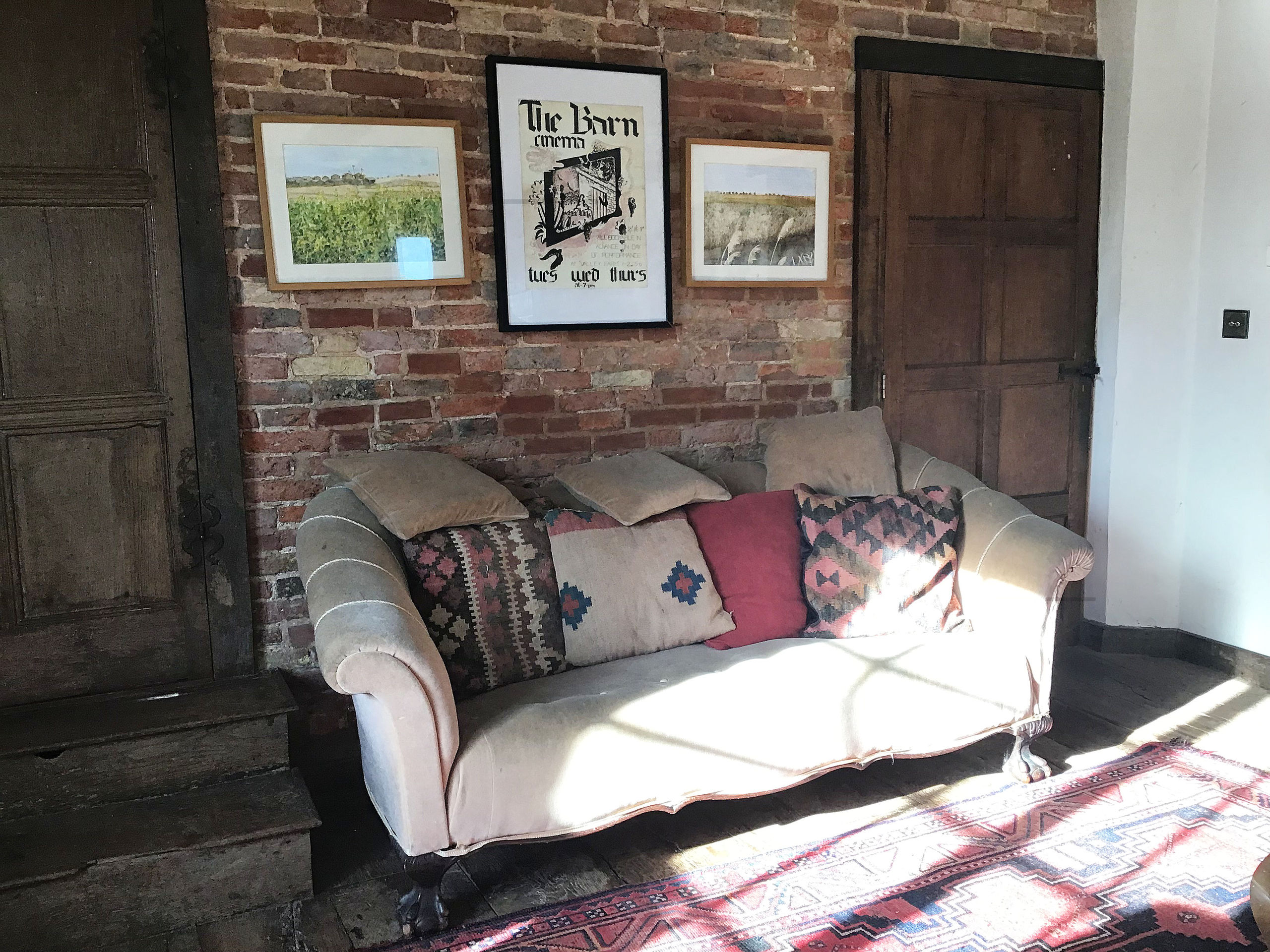 In the 1930s, Valley Farm was rebuilt by famous local architect Frank Jennings who installed many ancient materials - see in the Gallery the oak floor in the living room and the stairwell. In the early 1940s a cinema was operated from the barn at Valley Farm to entertain the troops stationed in Walberswick. An original poster for the 'Barn Cinema' also hangs in the house.